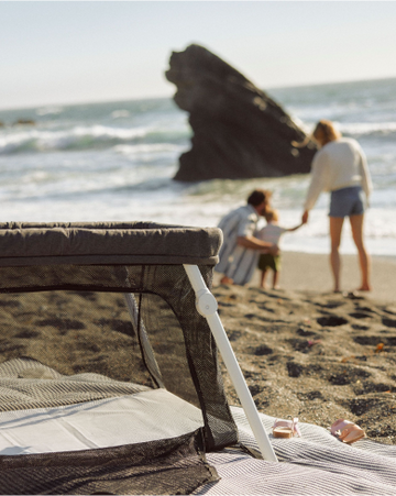 The 3D Z-Fold allows the Lotus Travel Crib to be small enough to carry through airports.
